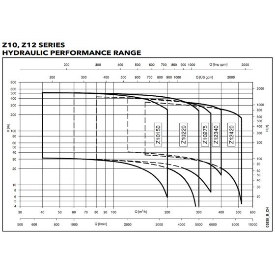 Die Serie Lowara Z-ZR10-Z-ZR12 ist eine mehrstufige vertikale Kreiselpumpe, die für den Einsatz in 10-Zoll und 12-Zoll Bohrungen konstruiert wurde. Diese Serie wurde entwickelt, um über ihren gesamten Leistungsbereich hinweg hohe Effizienz zu bieten, wobei fast jeder Betriebspunkt zwischen 120 m³/h und 460 m³/h eine Effizienz von über 80% aufweist. Die Wellenausrichtung der Pumpe ist speziell auf die Reduzierung von Vibrationsproblemen über die gesamte Lebensdauer der Pumpe ausgelegt. Der Verschleißring an der Z10/ZR10 Pumpe minimiert außerdem Rezirkulationsverluste und gewährleistet so hohe Effizienzniveaus in Anwendungen wie der Versorgung von Ausgleichstanks und Reservoirs, Feuerbekämpfung und landwirtschaftlicher Flutbewässerung.